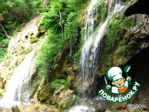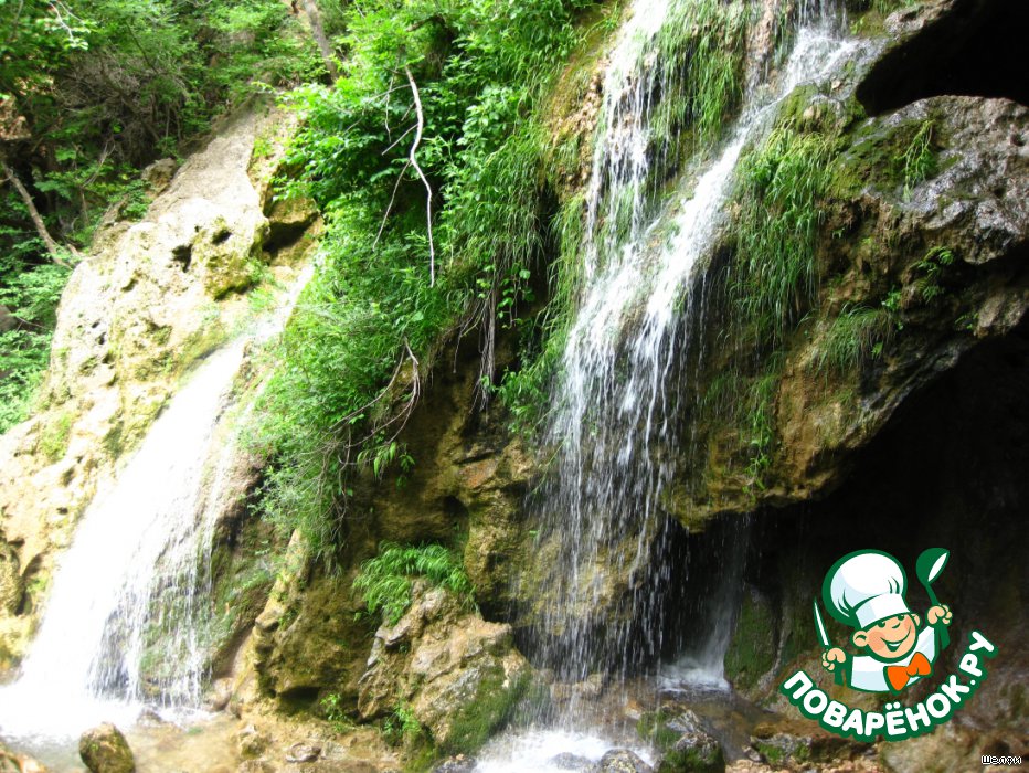 Двойного водопада. Такое ощущение, что струи студеной воды стекают по большой черепахе. Там вообще много камней похожи на окаменевших гигантских черепах: