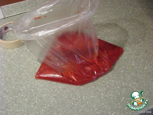 Дальше дело техники Берм пакеты и кладем в них клубнику. Я кладу не более трех половников - самая удачная пропорция для нашей семьи