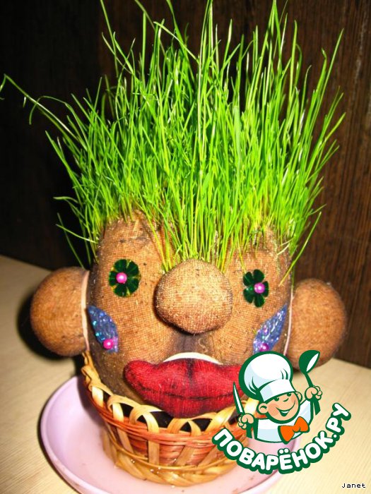 Вот такого вот человечка нам подарил крёстный! Доченька сначала не поняла что это, но потом очень обрадовалась, когда узнала, что у человечка вырастут волосики, если она будет за ним ухаживать, поливать! Она поливала его и брызгала каждый день. Приходила из садика, и сразу бежала на балкон посмотреть, на сколько выросли волосики.