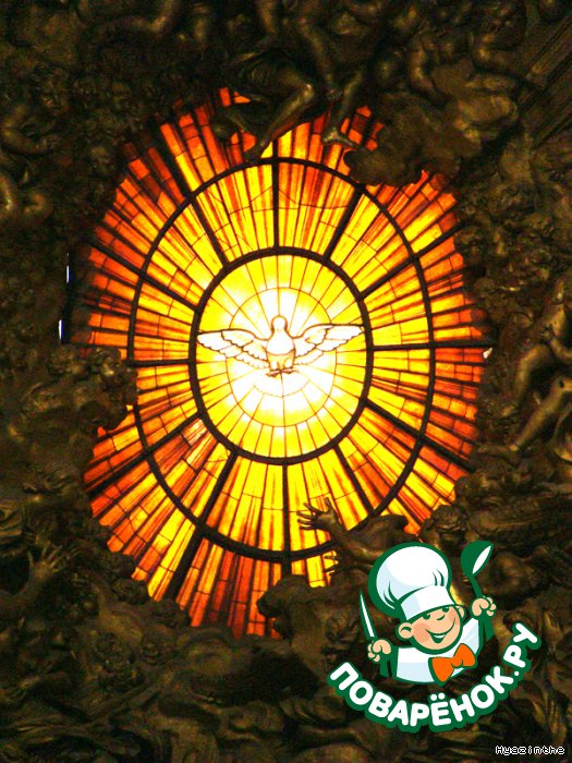 Заходим внутрь Собора, глаза разбегаются, куда смотреть, все так красиво. Но вот центральное изображение Святого Духа видишь сразу: оно как будто светится изнутри.
