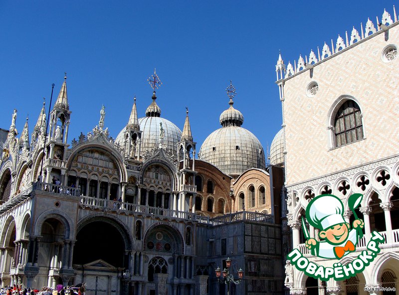 Площадь Сан Марко - уникальная по своей красоте, здесь находятся главная церковь Венеции - Сан Марко и Дворец Дожей. Ощущение, что ты на сцене, а вокруг великолепные декорации. Ощущение, что ты попал в сказку! В Церкви Сан Марко тоже нельзя фотографировать, но и снаружи есть на что посмотреть