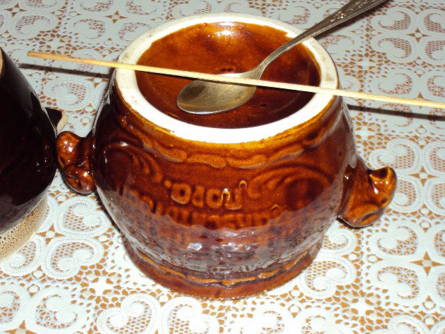 Вот так будет виднее. Это левый горшочек. Видите, ложка лежит, как в блюдце.