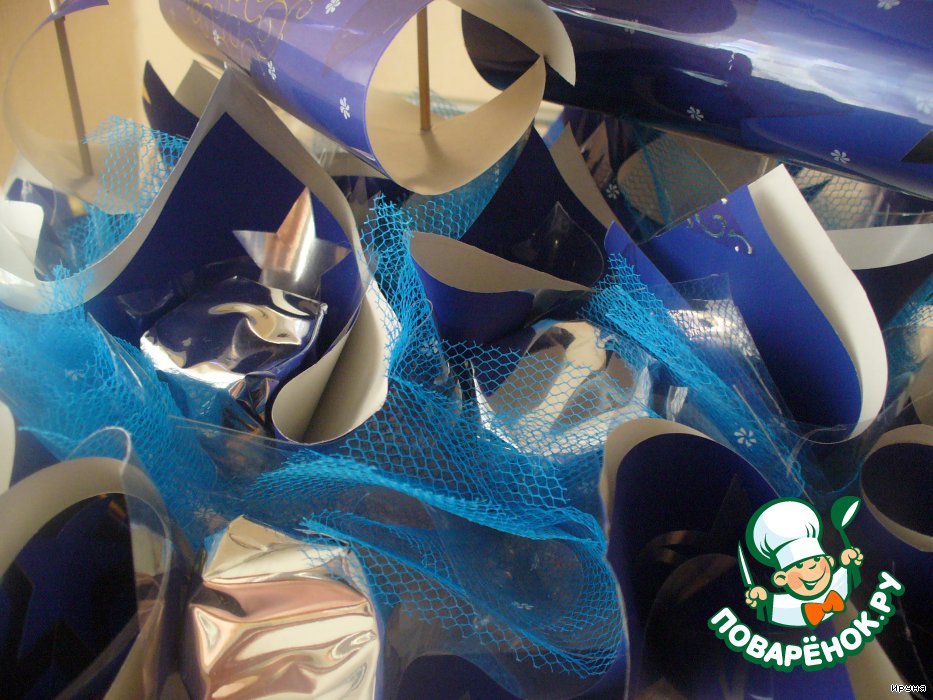[cut] Это сами конфеты здесь завуалированы (использовала конфеты "Ривьера" от "Рошен") + еще по конфете в конусах.