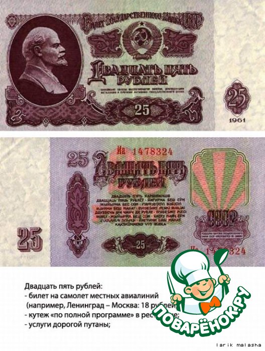А молоко стоило 24 коп за литр, хлеб ржаной - 16 коп, городской батон - 22 коп, колбаса докторская 2руб 20коп.