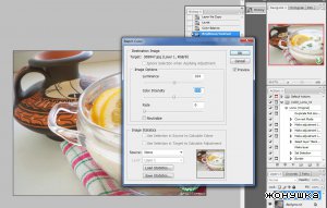 4. Если вам не нравится яркость фото, то мы идем Image (Изображение) – Adjustments (Корректировки) - Match Color (подобрать цвет) и тут главное не переусердствовать а то получится слишком не естественно. Так же двигаем ползунки.