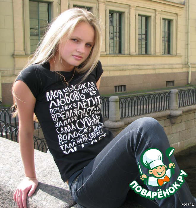 Она тоже поваренок, но своих рецептов в силу молодости и малоопытности не выставляет, но с преогромным удовольствием пользуется рецептами с сайта, активно рекламируя Поваренка среди друзей и знакомых. Ох, скольких она уже "подсадила"