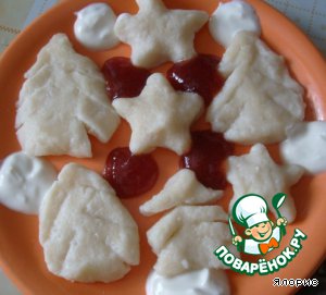 На завтрак готовила ленивые вареники. Это не интересно! Немножко времени дополнительно и получились вот такие елочки и звездочки