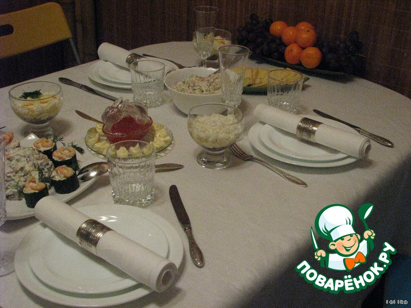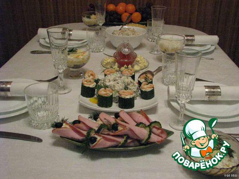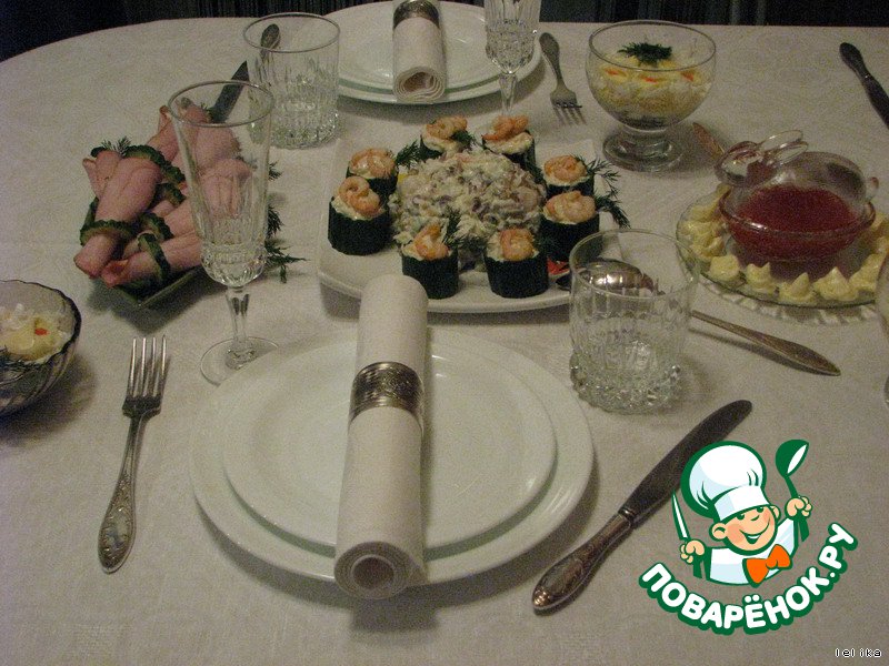 сервированный стол, когда получаешь от созерцания всего этого великолепия еще и эстетическое наслаждение и чувствуешь себя желанным гостем на королевском приеме! Леночка, хочу к тебе!!! *