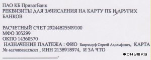 ВОТ РЕКВИЗИТЫ ДЛЯ ПЕРЕВОДА ДЕНЕГ НА КАРТОЧКУ ПРИВАТ БАНКА ПО УКРАИНЕ