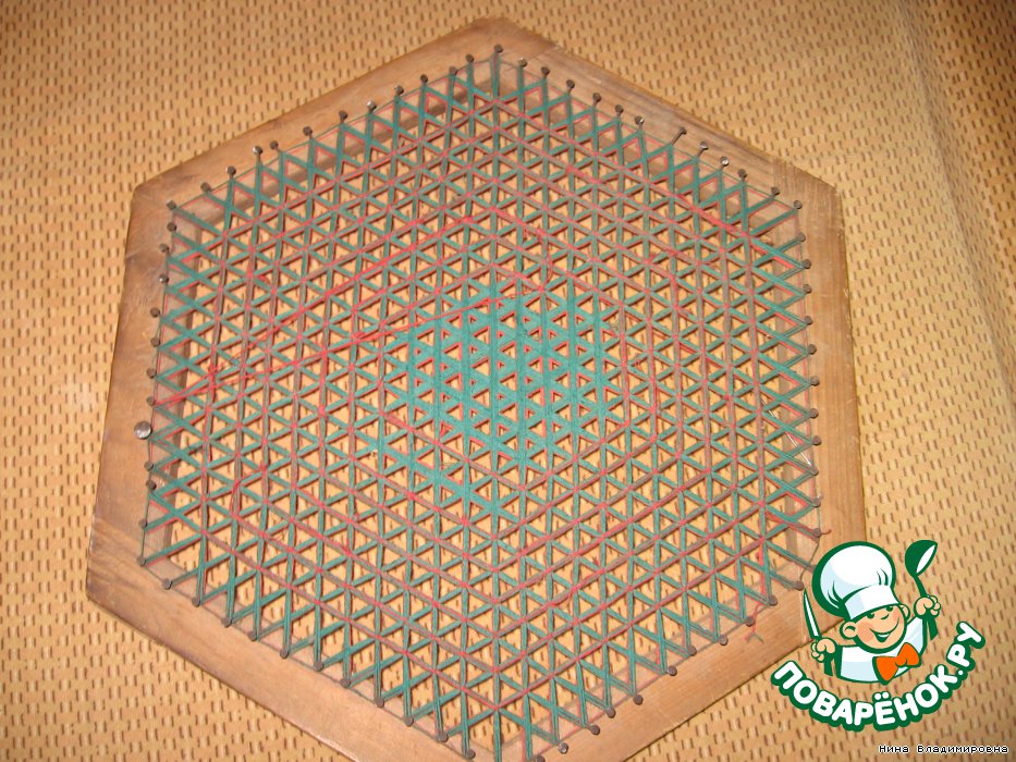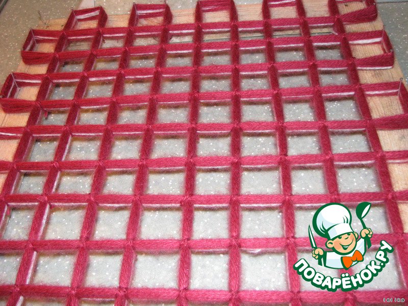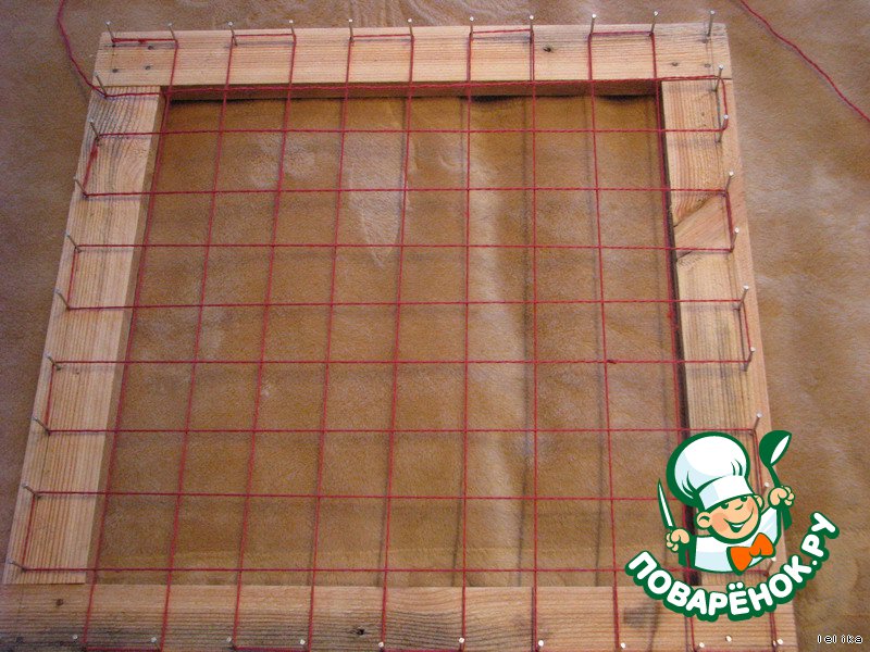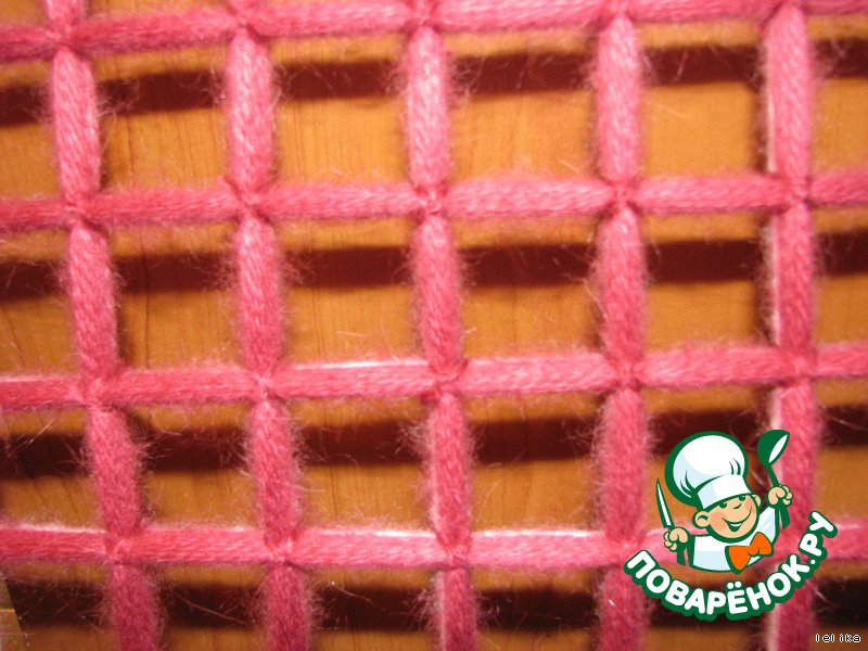 Каждое перекрестие завязываем ОЧЕНЬ крепко этими же нитками крест-накрест.