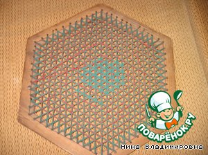 Бахрома получается разрезанием натянутых нитк между гвоздями