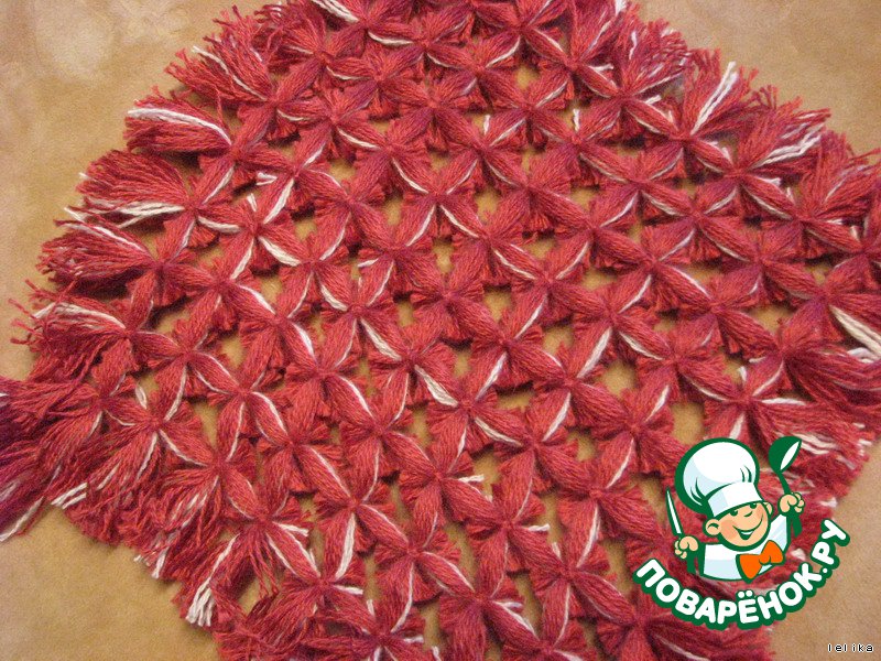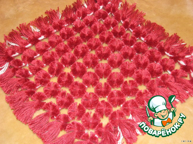 .Отсчитываем сверху 30 рядов - это у нас будут помпоны, оставшиеся 20 рядов будут основой.