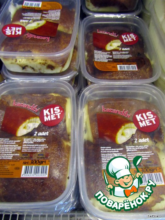 Казандиби - молочный десерт. Вот так казандибий обычно выглядит в магазине. Стоит примерно 2$ (3,5 лиры). А как сделать казандиби в домашних условия, можно посмотреть на сайте.