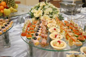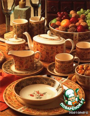 Основное условие сервировки - удобство и целесообразность. Сервировка стола зависит от числа гостей и повода, по которому они приглашены. Каждый предмет сервировки имеет свое назначение и определенное место на столе. Ложку и нож (отточенной стороной лезвия в сторону тарелок) кладут справа от тарелки, вилку- слева. Ложки и вилки кладут на стол вогнутой стороной. Закусочную тарелку ставят точно против стула. Возле каждого прибора, за закусочной тарелкой, ставят рюмки и фужеры. Вино (кроме шампанского) ставят на стол в откупоренных бутылках. Фрукты до прихода гостей на стол не подают. Желательно сервировать стол одинаковыми приборами и посудой, но следует иметь ввиду, что слишком дорогая посуда не всегда уместна и может вызвать у гостя чувство неловкости. Надо предусмотреть наличие на столе бумажных и льняных салфеток. Праздничный стол накрывают в каждой семье. Сервировку его можно дополнить на свой вкус, не лишне поставить на стол цветы. [cut]