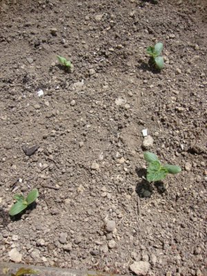 Вот и "однорукие" кабачки, я их сразу посеяла в землю, вот какие они уже выросли.