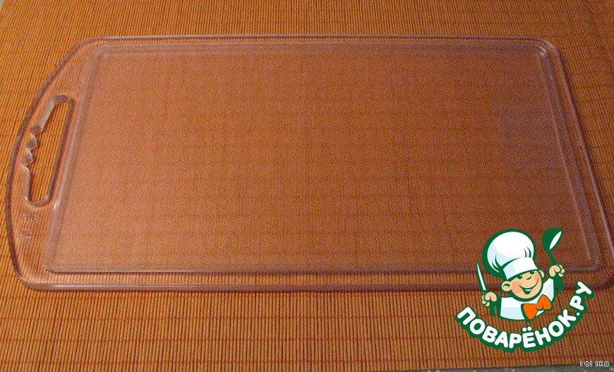 И еще одна покупка - акриловая доска. Классная вещь: отлично моется, не сохраняет запахи, бесшумна (н-р, не как стеклянная), не тупит ножи.