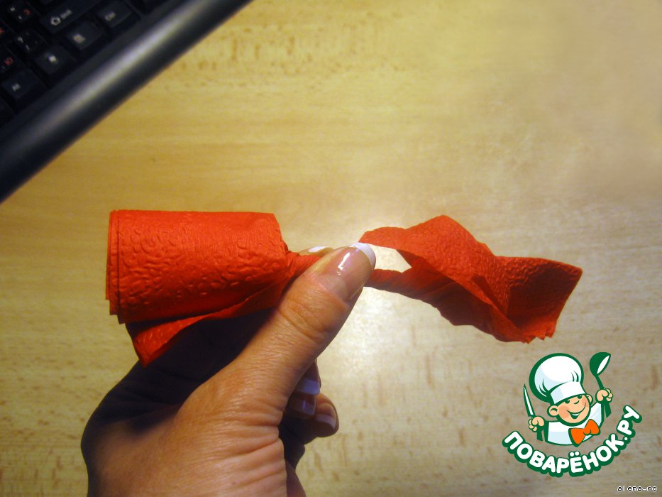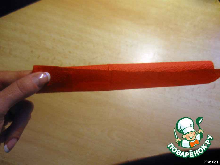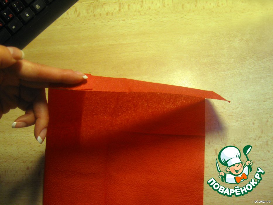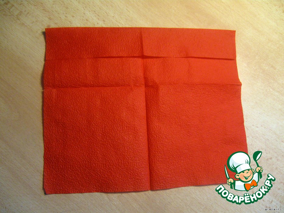 Возьмите бумажную салфетку и полностью разверните. Отогните на себя верхнюю часть салфетки (около 4 см.).