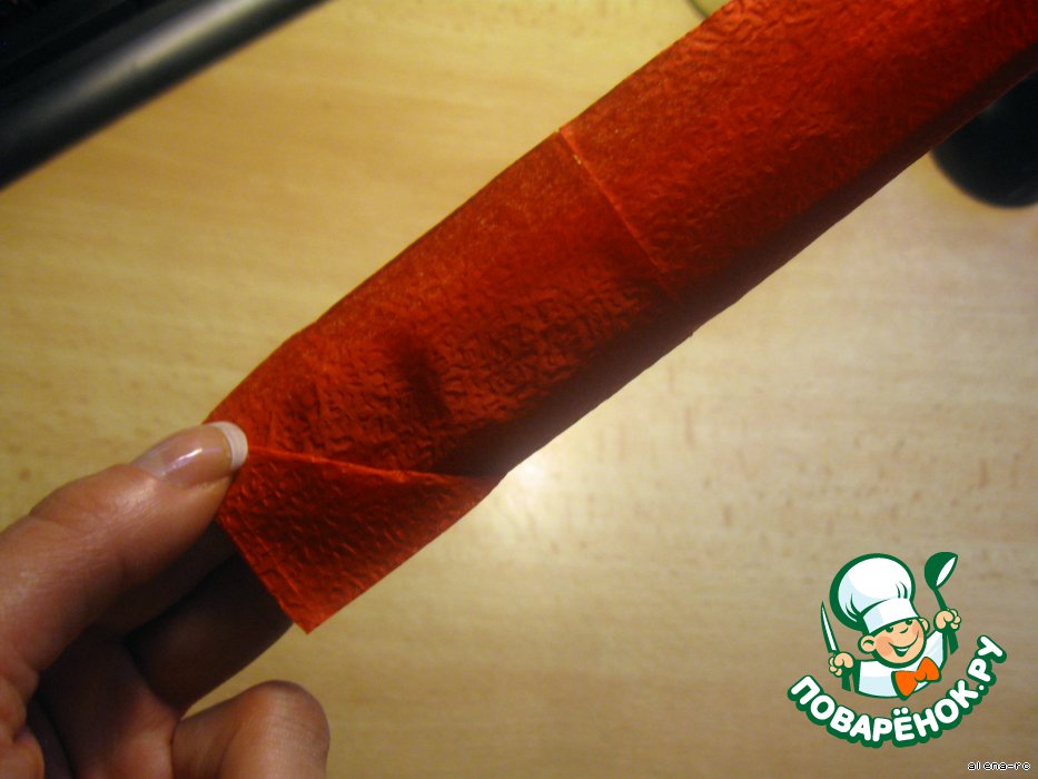 Даю подсказочку Под красненькую салфеточку, положить зелёненькую. И скручивать вместе