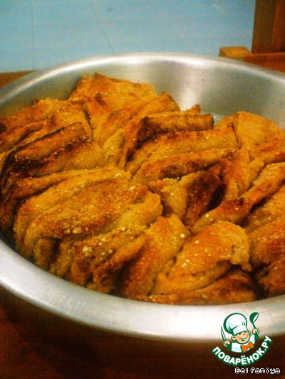 там, где коричневеет на фото - это не горелки, это корица. потому что я, тесто делала по рецепту Лорхен, но добавила коричную начинку по совету larik_malasha. так что спасибо, говорю обоим создателям рецепта. к сожалению, хлебной формы прямоугольной пока нет. но и в этой неплохо получилось, хотя вид, конечно, не тот, буду уговаривать мужа на формочку хлебную