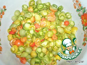 Решила я сегодня пристроить в зиму собравшиеся у меня зеленые помидорки. На Поваренке несколько дней назад подобрала рецепт.