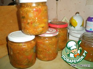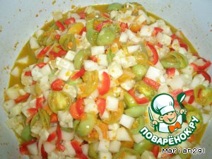 Однако, оказалось, что за эти несколько дней составу рецепта мои домашние нанесли урон- попросту говоря, перцы съели, оставив всего один.
