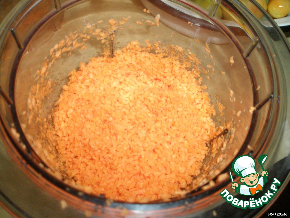 2.морковь в блендере размельчила(благо утром ее начистила с лихвой, когда на завтрак омлет с морковью делала)