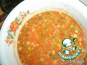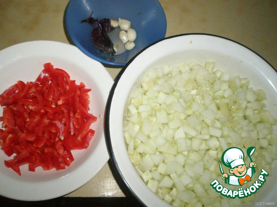 Однако, оказалось, что за эти несколько дней составу рецепта мои домашние нанесли урон- попросту говоря, перцы съели, оставив всего один.