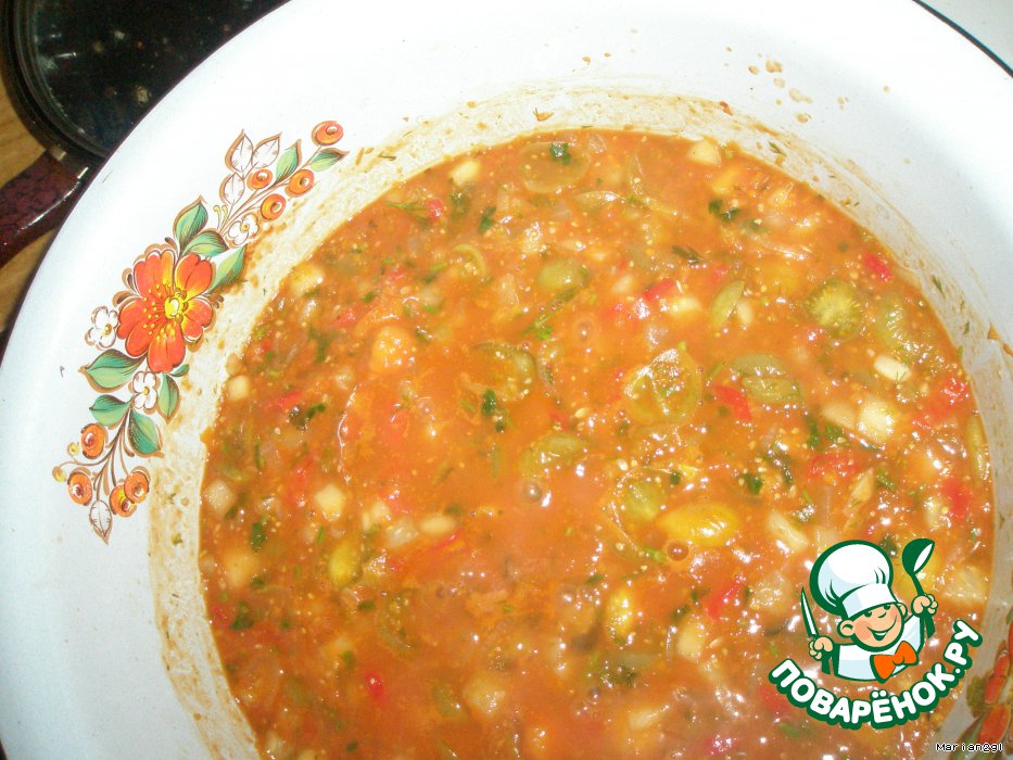 5.На этом этапе обнаружилось, что нет приготовленных вымытых банок, поэтому готовая смесь пока стоит без огня. Зато пропитается.