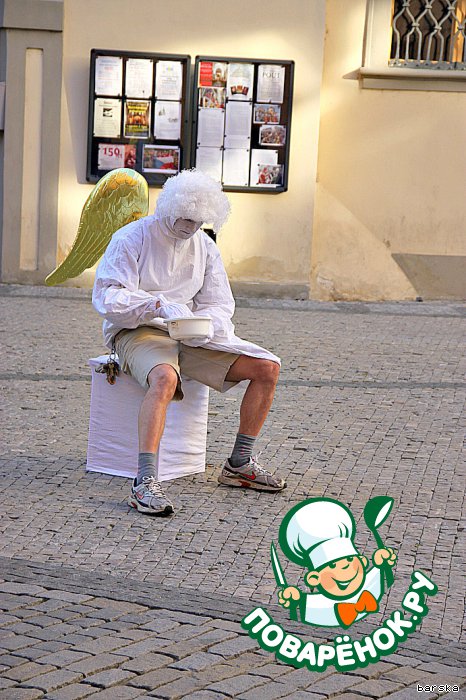 Только мы увидели живую фигуру ангела и разгадывали, что же он изобразит, если бросить монетку, ангел слез с тумбы и начал подсчитывать дневную выручку... Ну что ж, у ангелов тоже есть своя бухгалтерия...