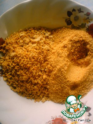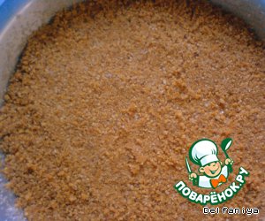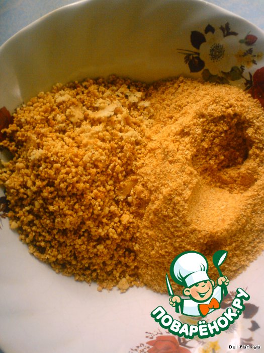 1. Измельчить блендером печенье в крошку и смешать с измельченным и подсушенным (на сухой сковороде, постоянно помешивая) арахисом.