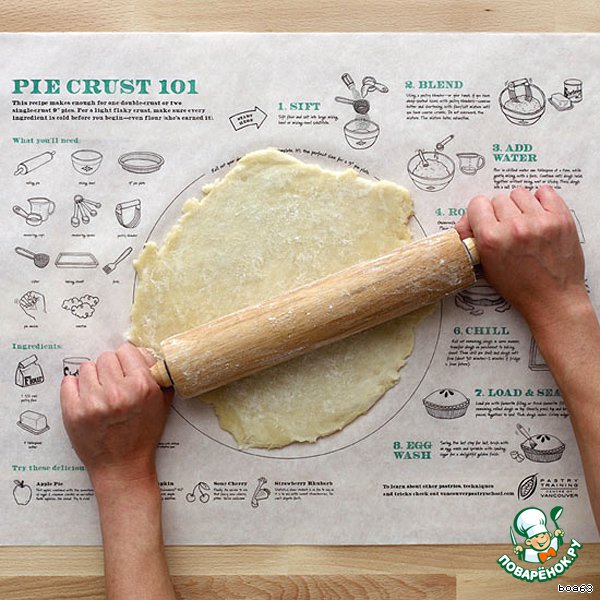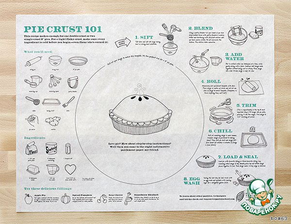 Весь поэтапный план создания выпечки напечатан на большом листе пергаментной бумаги.
