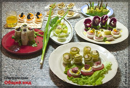 5. Советский человек добр, хлебосолен и любвеобилен. Советские суши должны быть вкусными, сытными, разнообразными и красивыми.