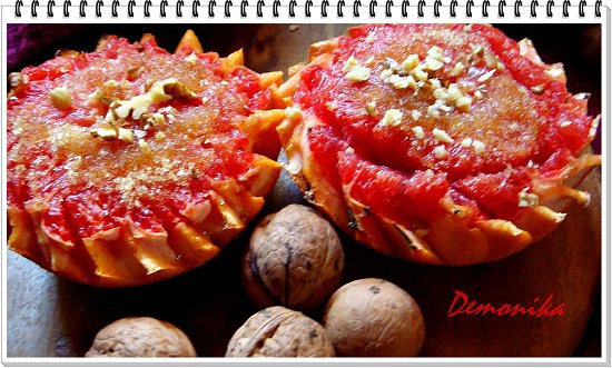 Запечёный грейпфрут. Рецепт мой, вошёл в неделю. На любителя, но попробовать стоит.