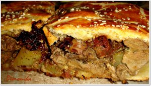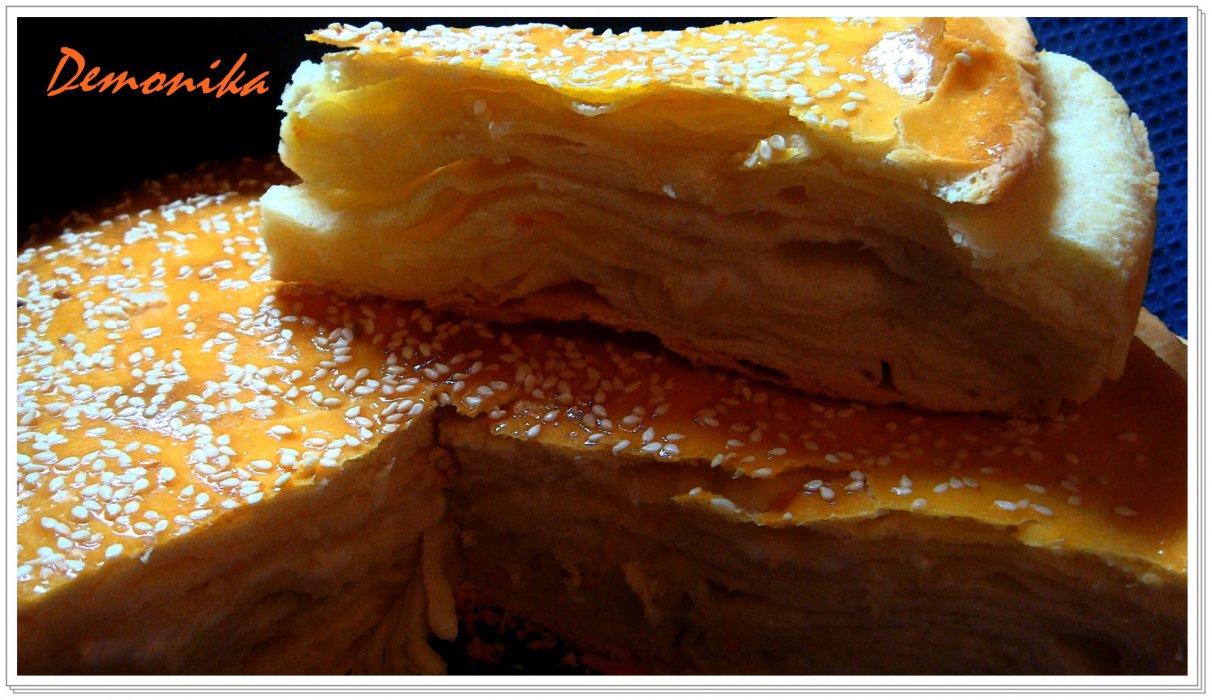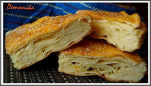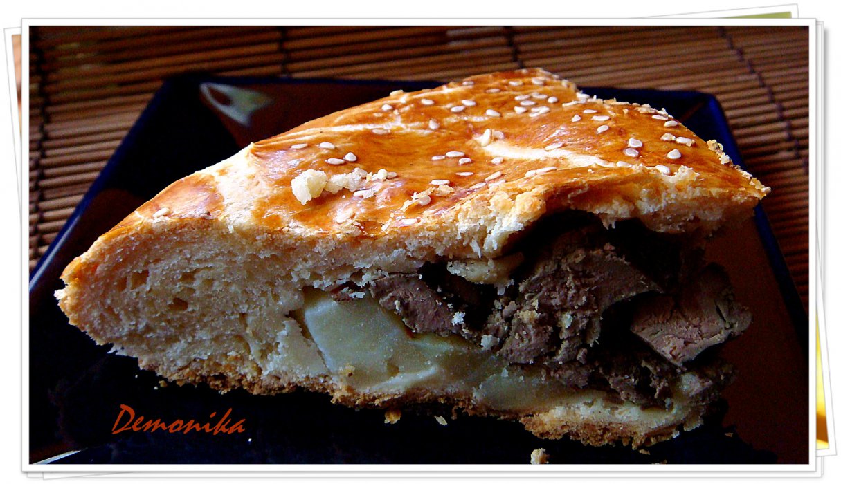 Слоёный пирог с печёнкой. Делала со своим универсальным тестом. Необычно.