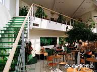 Внутри тоже очень красиво,в стенах встроенные аквариумы,множество зелени.На первом этаже кафе и зал-бистро,а на втором-зал ресторан.На второй этаж ведёт лестница со стеклянными ступеньками.
