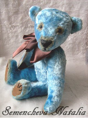 Медведь сшит под впечатлением от этого персонажа из винтажного плюша. Ткань-дублер – фетр, коготки и нос вышиты нитками мулине (нос покрыт воском). Глазки стеклянные, выполнены в стиле тюр-тюр (Германия). Голова и лапы на шплинтовом креплении – подвижны. Медведь набит древесными опилками и утяжелен металлическим гранулятом. Тонирован маслом.