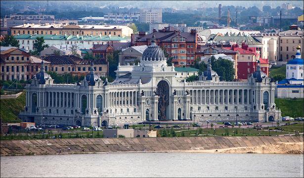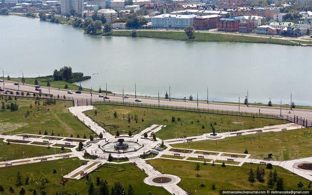 Вид на озеро Кабан, справа со скошенной голубой крышей Татарский драматический театр