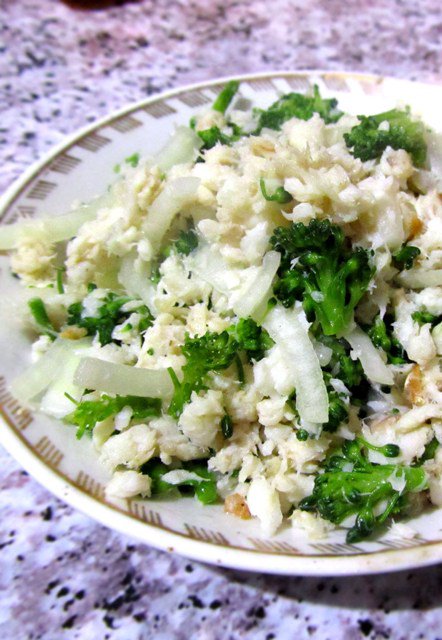 Камбалу очистить и поджарить (или отварить), разобрать горячую на кусочки и добавить порезанный полукольцами репчатый лук, перемешать и отложить. Брокколи отварить в подсоленой воде 3-5 минут, разобрать на соцветия и добавить к рыбе и луку. Посолить поперчить по вкусу, полить лимонным соком и салат готов. Количество ингредиентов на ваше усмотрение.