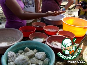 Саму породу поднимают наверх в корзинах или ведрах с помощью веревок, а затем промывают под струей воды или в ближайшей речке.