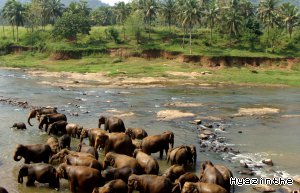 Слоновий питомник в Пиннавела - государственный, создан в 1975 году. Перевод с немецкого (мы путешествовали везде с нем.группой) звучит как "слоновий сиротский дом", что, на мой взгляд, лучше отражает суть этого заведения. Сюда поступают молодые особи, оставшиеся без родителей. В питомнике слонята получают небольшое образование, после чего некоторых из них отправляют в зоопарки различных стран мира, а другие обучаются для работы на Цейлоне. Самым юным слонам - около 4 месяцев. Нам разрешили покормить их из бутылки с соской. Забавно!