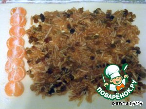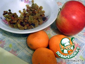 яблоко, как понимаете, для пирога маловато. Пришлось срочно спасать ситуацию, а так как дело было под конец недели, то и с продуктами не разгуляешься. Так что все, что я смогла найти на замену это небольшая горсть изюма и мандарины. Большого выбора у меня не было и они пошли в начинку. Если в начале я беспокоилась за результат, то потом была от него просто в восторге. Что я могу сказать, с тех пор пирог с яблоками у нас идет только в компании с мандаринами и изюмом. Итак, вот продукты, которые нам нужны.