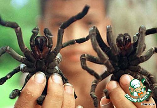 Считается, что во времена правления Кмера Роуджа в 1970, жители Камбоджи, чтобы спастись от голода начали питаться жареными тарантулами. В наши дни, это блюдо считается одним из самых вкусных деликатесов.