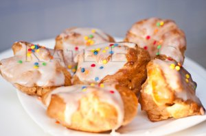Ну и должно же все красиво быть, верно?)), так что сверху залила эклеры глазурью, представляете, для меня ее рецепт тоже стал открытием...все время думала, чем это таким булочки поливают