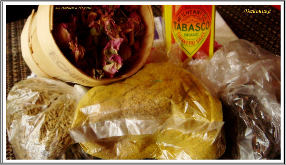 Комплимент от Ларисы (ларек) и её дочки Маруси. Ароматнейшие марокканские специи, полотенце и жгучий табаско. А какие сухие марокканские розы... А личное письмо от Маруси- просто прелесть!