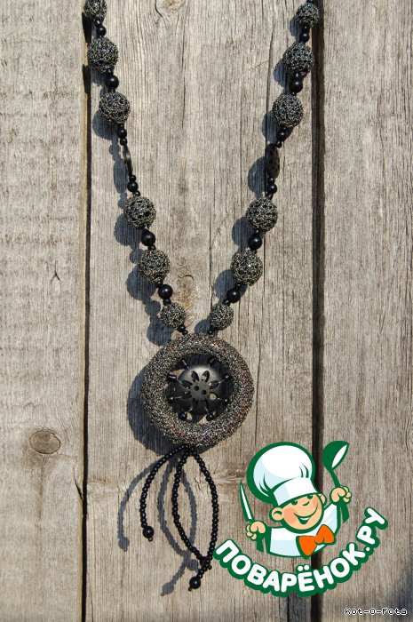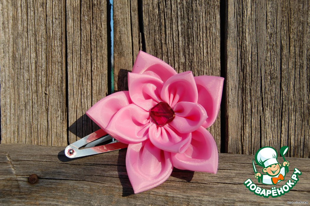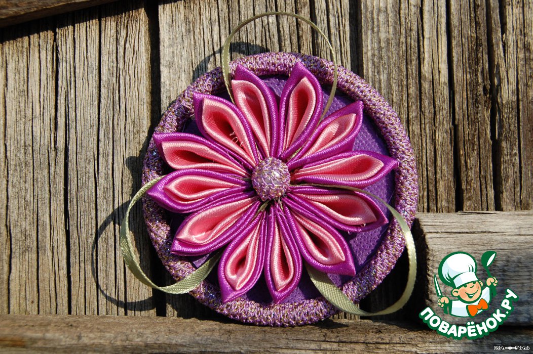 Пока теребила его туда-сюда, атласная лента стала выглядеть неопрятно, решила переделать бусы. После канзаши сделала цветок из кружков, которые складываются вчетверо и нанизываются на нитку, делается очень легко, а получается замечательно. Первый цветок был из розовой ленты и таких ниток у меня нет, сделала из него заколочку