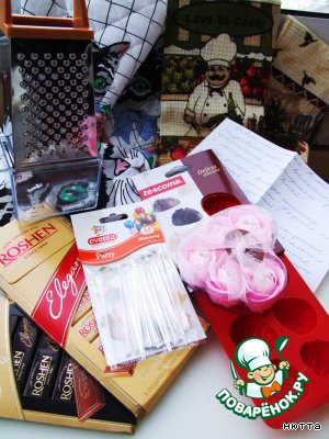 Вот какая россыпь подарков!!![cut]И немножко поближе...Вкуснейший украинский шоколад,мой младшенький-большой любитель шоколада,практически в одного съел плитку))))ООООООчень красивые полотенчики...с Поварёнком!