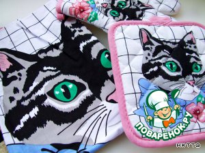 Набор таких нежных прихваточек с фартуком!Зная мою любовь к кошкам,Тонечка прислала прихватки с котейками!