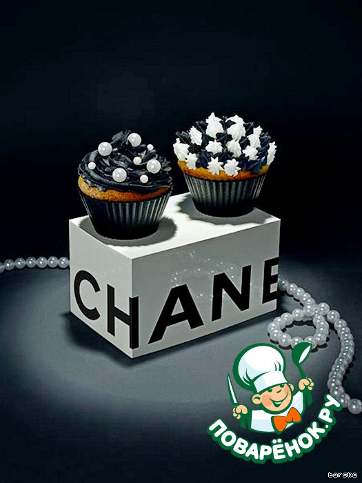 Например, бренд Chanel можно узнать по каплям жемчуга, сделанным из белого крема, которым покрыта шоколадная глазурь кекса.