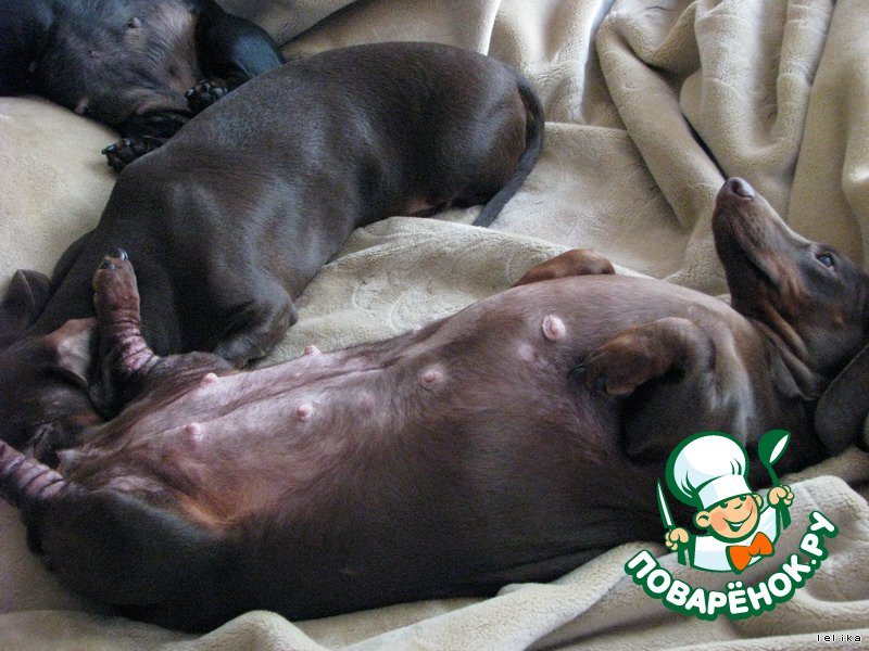 Дрыхнут мои таксики, Сонечка животик выставила свой объемистый на всеобщее обозрение - одна из любимейших поз.