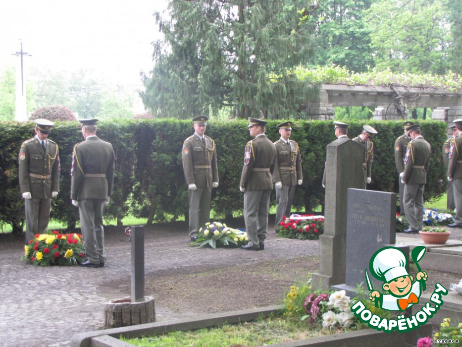 8 мая ездили на кладбище положить цветы к Памятнику советским воинам, попали на официальную церемонию возложения венков.
